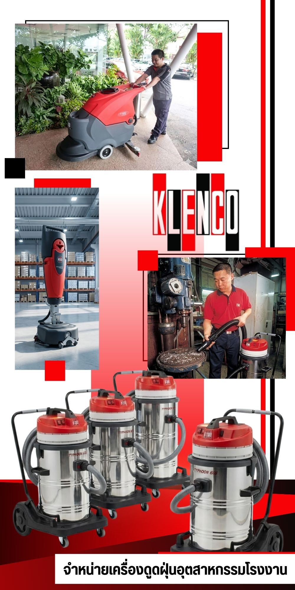 บริษัท เคลนโก้ (ประเทศไทย) จำกัด ดำเนินธุรกิจเป็นผู้นำเข้า ตัวแทนจำหน่าย และให้บริการซ่อมบำรุง เครื่องดูดฝุ่นอุตสาหกรรม (Industrial Vacuum Cleaner) และเครื่องมือทำความสะอาดชั้นนำจากยุโรป มายาวนานกว่า 39 ปี เรามีความเชี่ยวชาญในการคัดสรรนวัตกรรมทำความสะอาดที่ตอบโจทย์งานหนัก (Heavy Duty) โดยเฉพาะ พร้อมทีมงานมืออาชีพที่พร้อมให้คำปรึกษา สาธิตสินค้า และบริการหลังการขาย